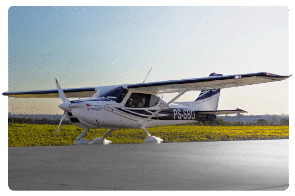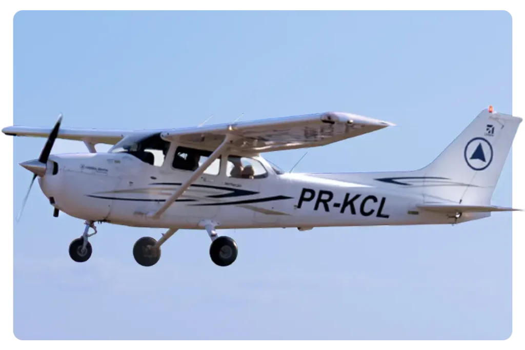 Referência mundial no treinamento de pilotos, o Cessna 172 combina estabilidade, conforto e eficiência em voo.