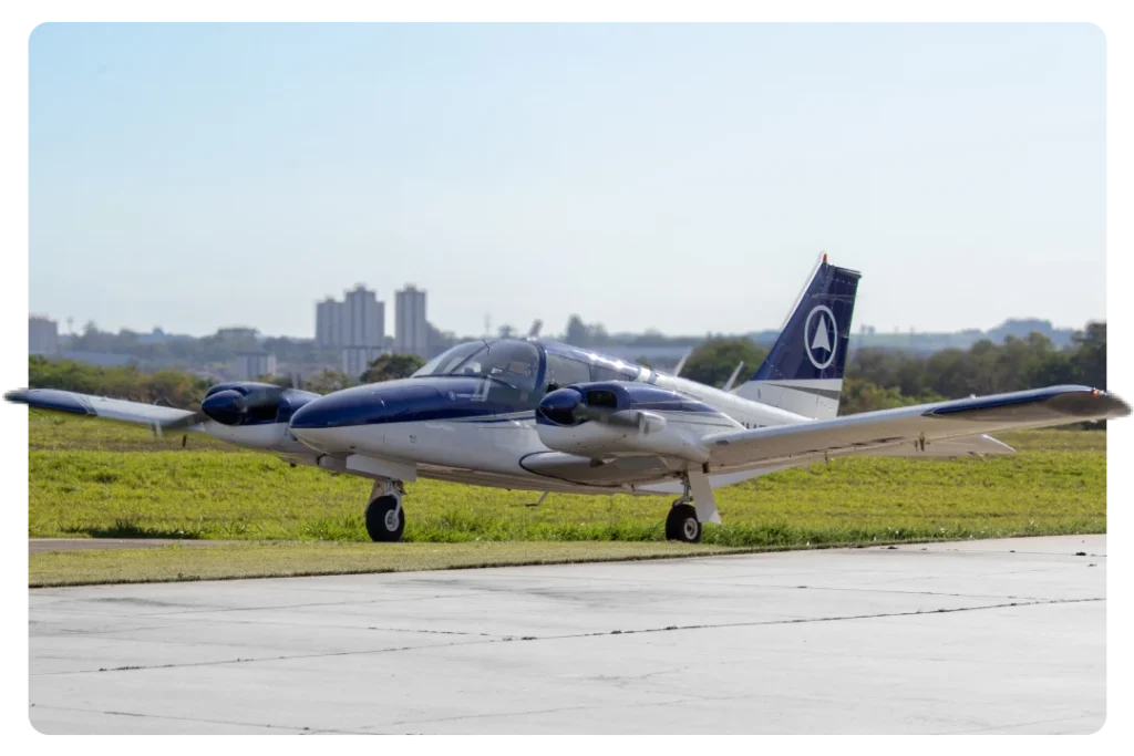 Bimotor robusto e versátil, ideal para formação avançada em voos por instrumentos e multimotores.